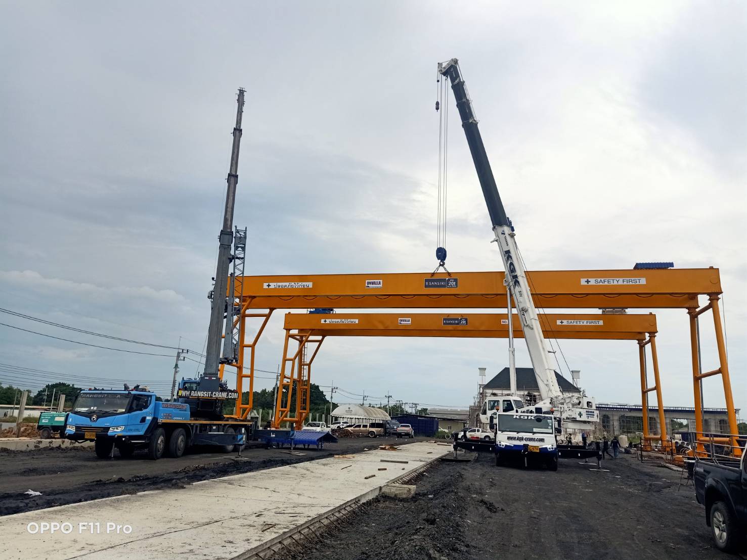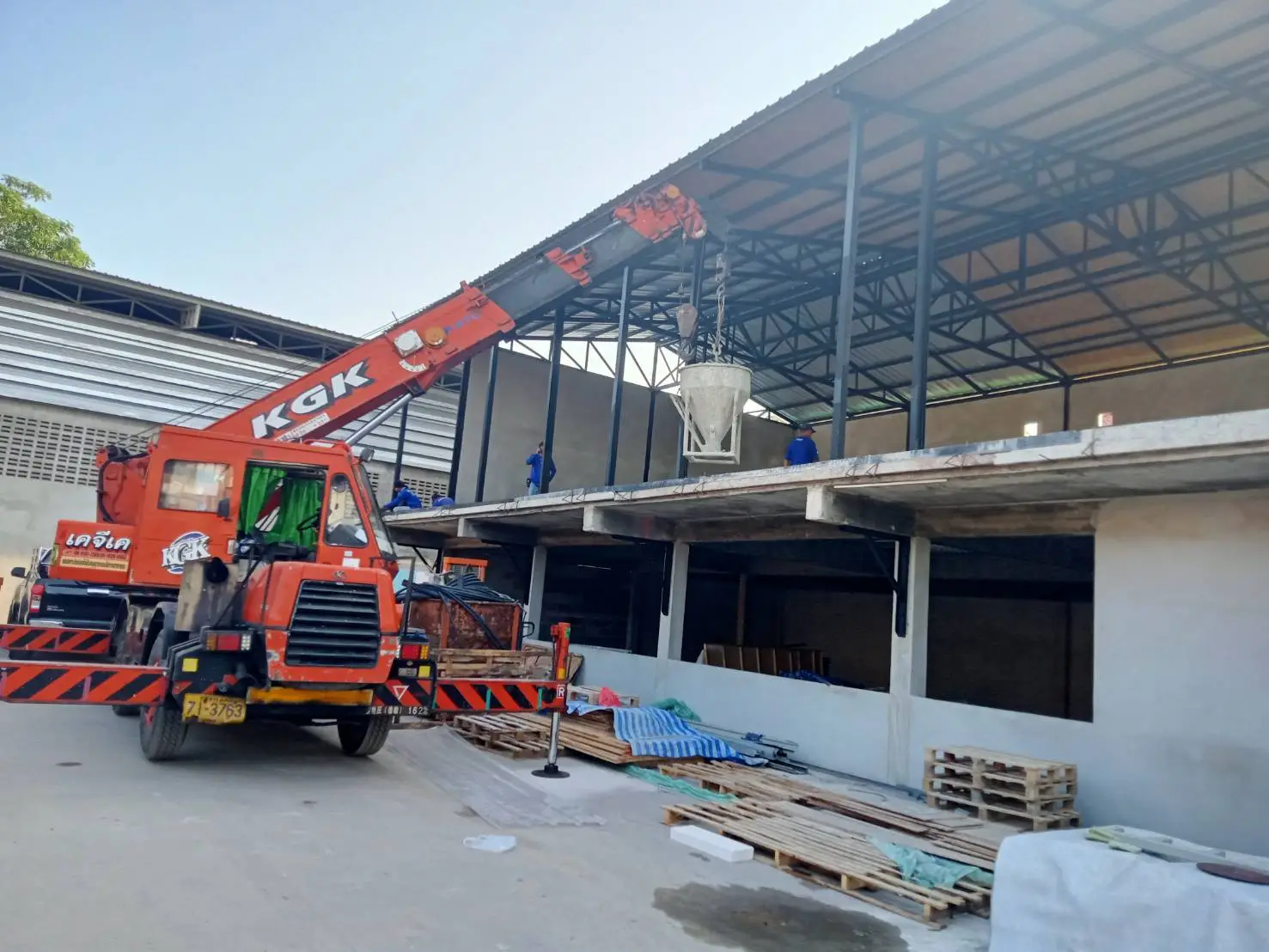 รถเครนงานเทปูน งานก่อสร้าง งานยกโครงหลังคา